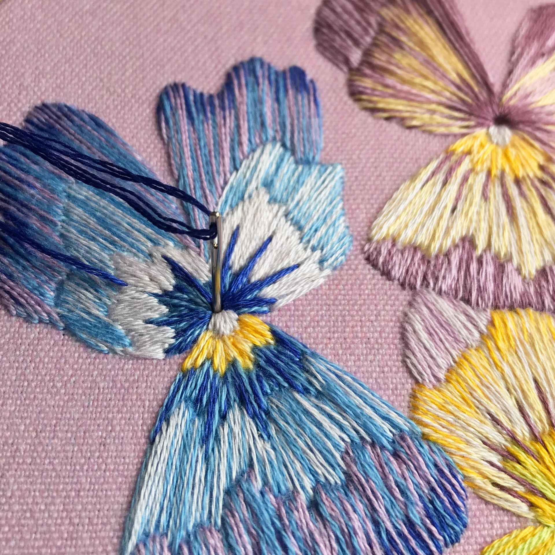 Lucy's self-taught embroidery style is a bold interpretation of the traditional craft. She works in a modern painterly style, using colour blending and shading as well as large textured stitches. Lucy loves to push the boundaries of embroidery, experimenting with scale, layering and innovative display methods.